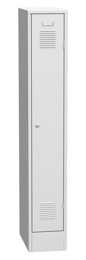 Garderobenschrank mit Sockel, 1 Tür, B x H x T 400 x 1850 x 500 mm. Korpusfarbe RAL 7035 Lichtgrau.