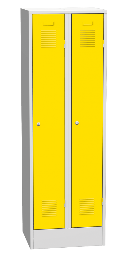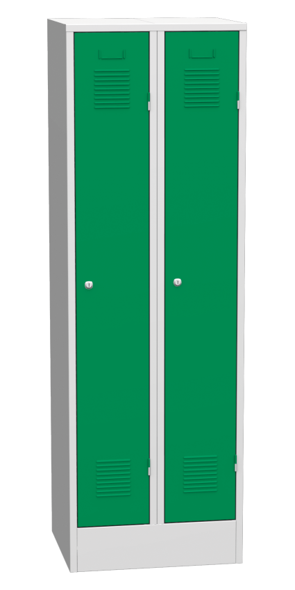 Garderobenschrank mit Sockel, 2 Türen, B x H x T 600 x 1500 x 500 mm. Korpusfarbe RAL 7035 Lichtgrau.