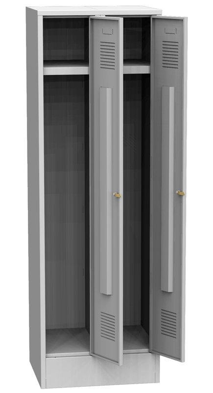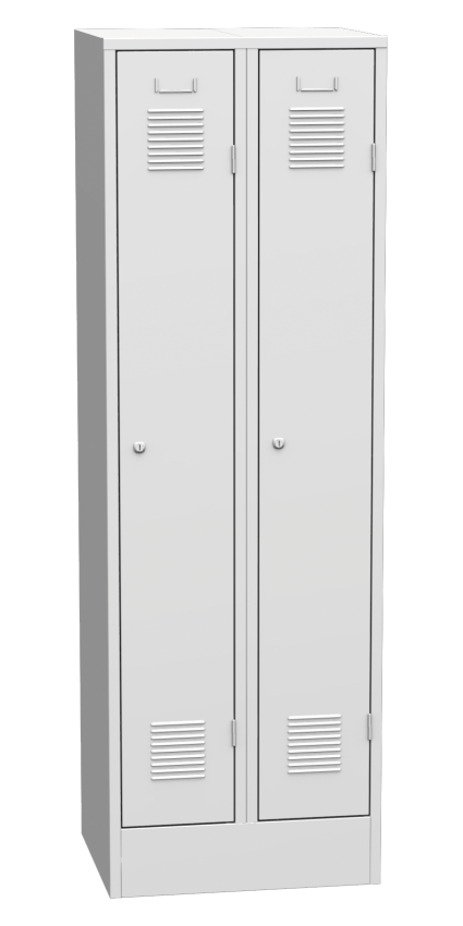 Garderobenschrank mit Sockel, 2 Türen, B x H x T 600 x 1850 x 500 mm, Korpusfarbe RAL 7035 Lichtgrau. vollständige Beschreibung und Parameter