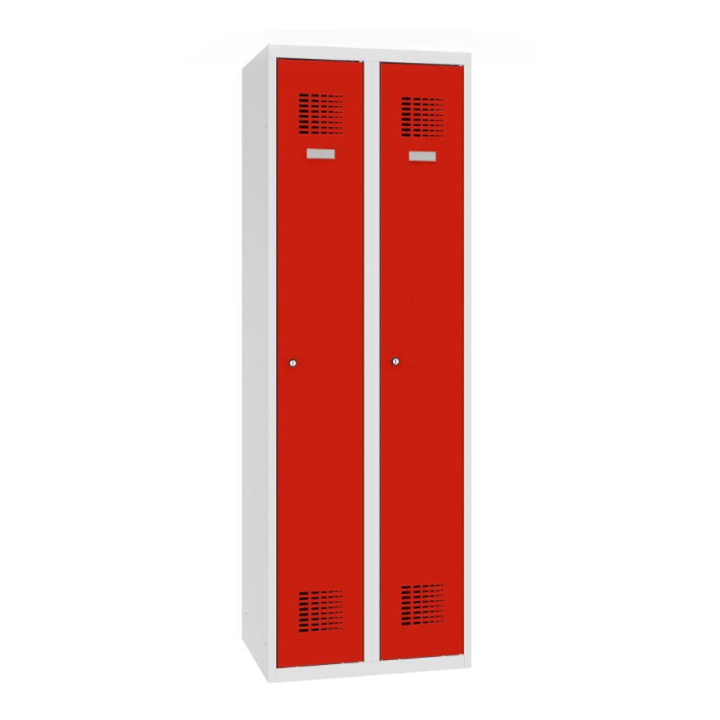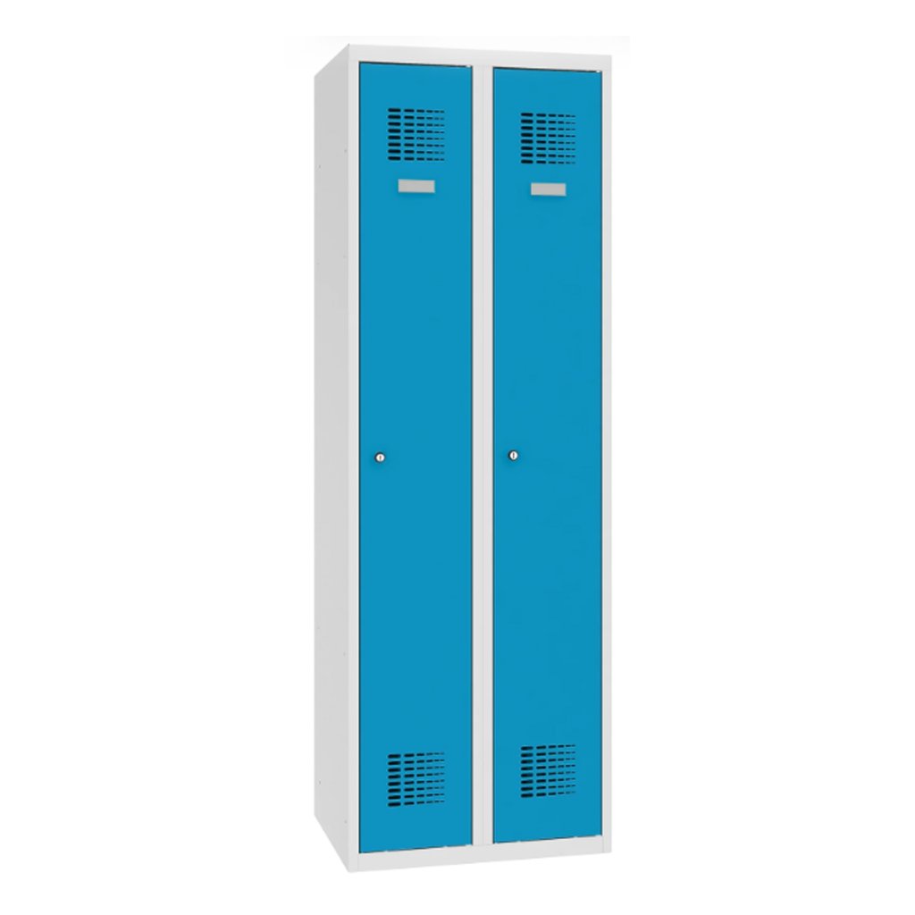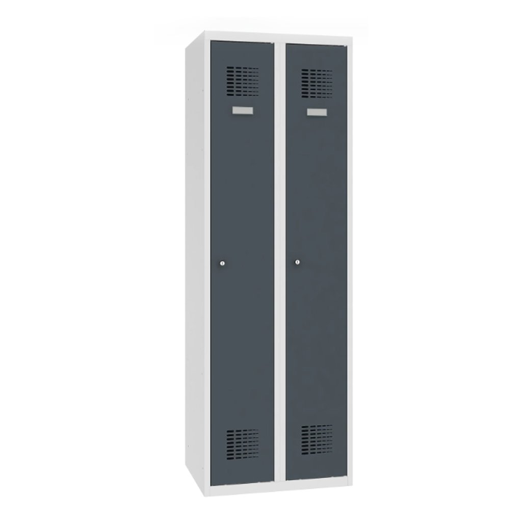 Garderobenschrank mit Sockel, 2 Türen, B x H x T 600 x 1850 x 500 mm, Korpusfarbe RAL 7035 Lichtgrau.