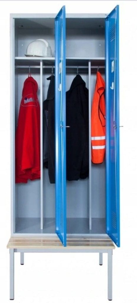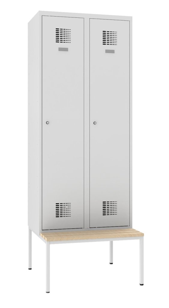 Garderobenschrank Sum 420 W mit untergebauter Sitzbank P321 W, H x B x T 2190 x 800 x 500 mm. vollständige Beschreibung und Parameter