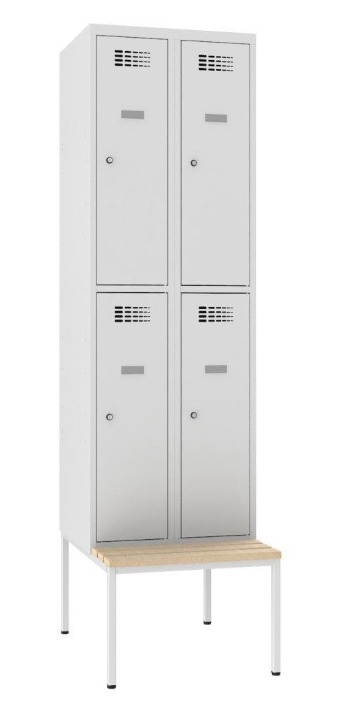 Garderobenschrank Sus 322 W, mit untergabauter Sitzbank P321 W, H x B x T 1800 x 600 x 500 mm. vollständige Beschreibung und Parameter