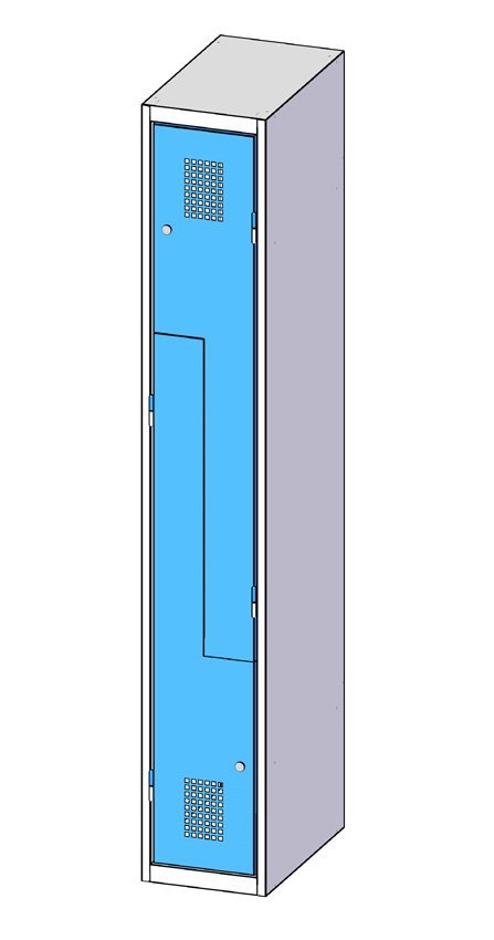 Basisfarbausführung - für das Garderobenschranksortiment gilt standardmäßige Farbstellung. Das Garderobenschrankgehäuse in der Farbe RAL 7035, die Tür RAL 5012. Diese Farbstellung wird dann angewandt , wenn in der Bestellung keine gewünschte Farbstellung angeführt ist. |