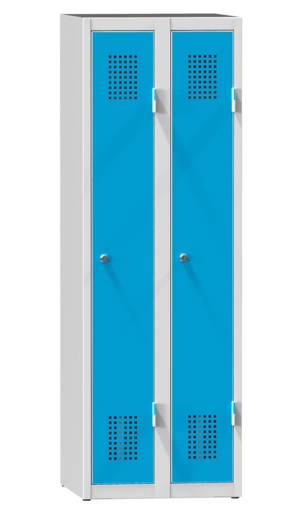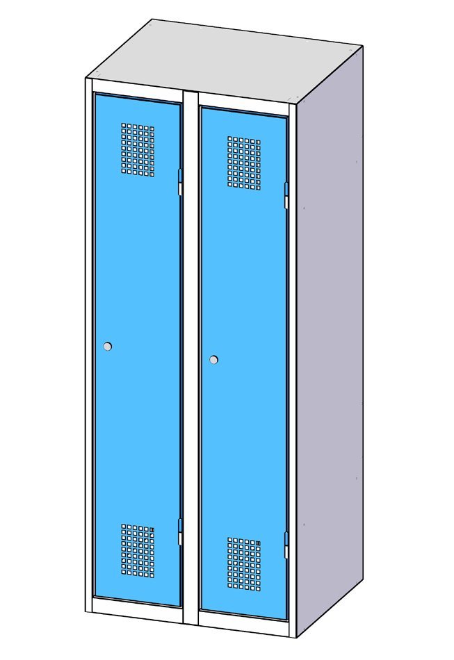 Basisfarbausführung - für das Garderobenschranksortiment gilt standardmäßige Farbstellung. Das Garderobenschrankgehäuse in der Farbe RAL 7035, die Tür RAL 5012. Diese Farbstellung wird dann angewandt , wenn in der Bestellung keine gewünschte Farbstellung angeführt ist. |