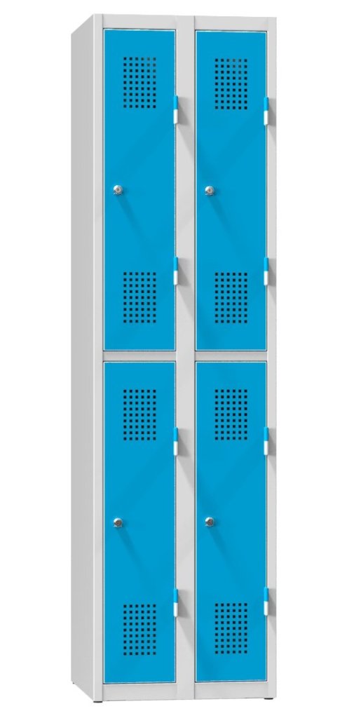 Garderobenschrank, 4 Türen, B x H x T 600 x 1850 x 500 mm. Korpusfarbe RAL 7035 Lichtgrau.