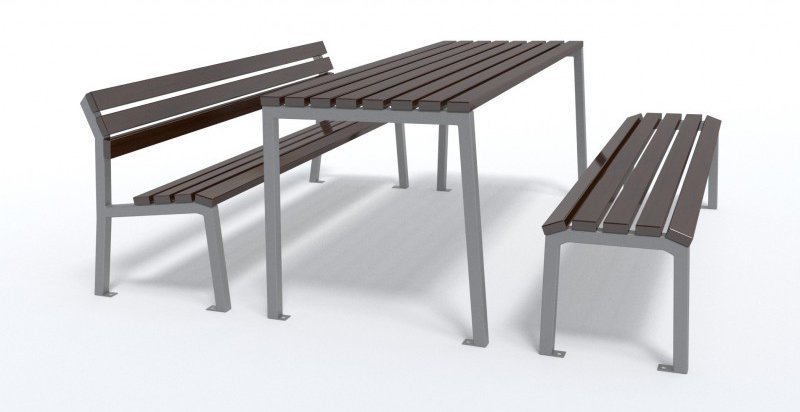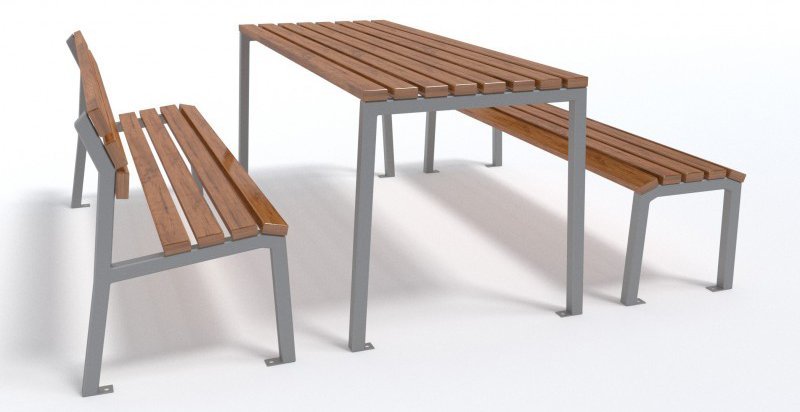 Gartenset mit sehr robuster Konstruktion von Bänken und Tisch. Das Gartenset enthält - 1x Tisch + 1x Bank mit Rückenlehne und 1x Bank ohne Rückenlehne. Konstruktion aus Hohlprofil 60 x 60 mm, mit eingebrannter Farbe behandelt oder feuerverzinkt. Möglichkeit der Bodenbefestigung durch Schrauben oder Einbetonieren. Lattenmaße 1500 x 120 x 40 mm. 2 Jahre Garantie.
