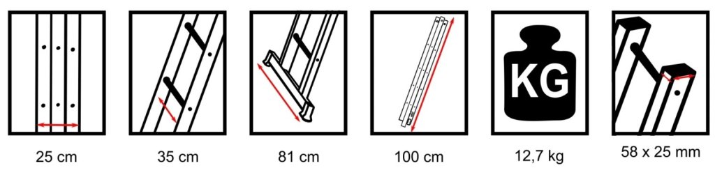 Gelenkleiter DU 4X3, 4-teilig, Breite 350 mm, Sprossenzahl 4x3 vollständige Beschreibung und Parameter