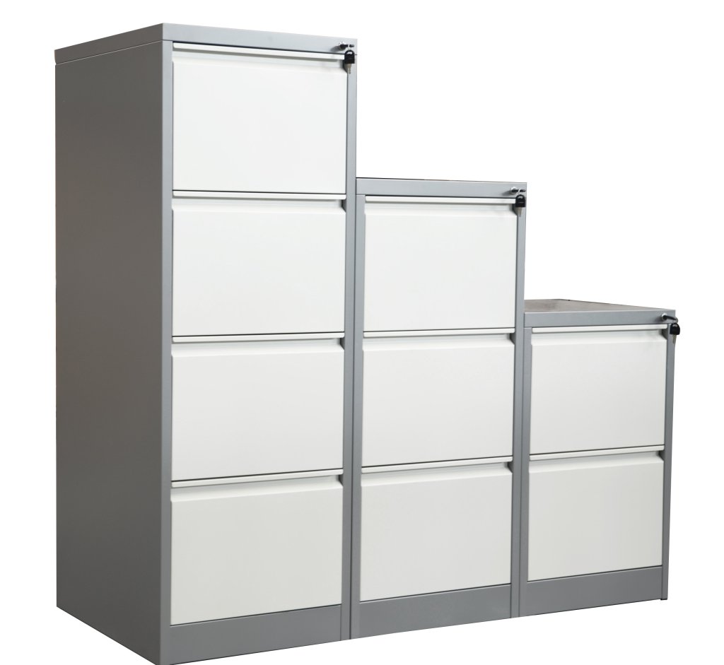 Hängeregistraturschrank HD, 4 Schubläden, Format DIN A4, demontiert, aus Stahlblech 0,6 mm. H x B x T 1315 x 400 x 600 mm, Zentralverriegelung, Schubladen-Auszug 100%. Für Dokumente oder Hängemappen, Format DIN A4. Korpus grau.