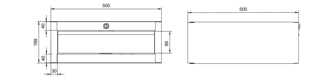 Hängeschublade DUK_01_A, B x H x T 500 x 189 x 500 mm. Korpusfarbe RAL 7035 Lichtgrau. vollständige Beschreibung und Parameter