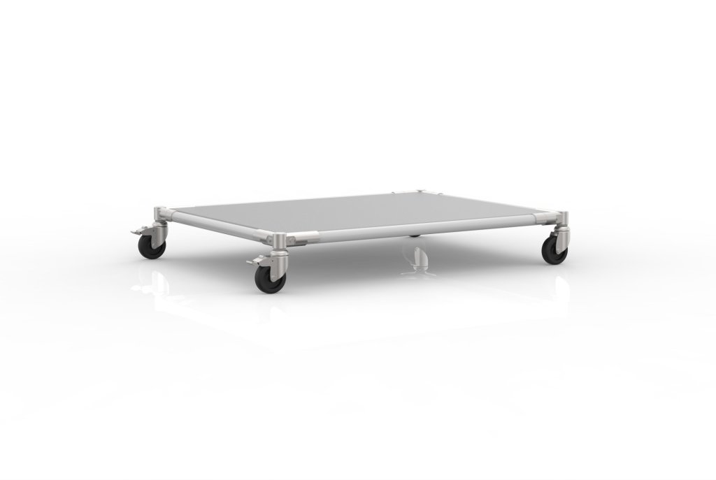 Ein Manipulationswagen aus einem Rohrsystem ist für verschiedene Handhabungszwecke in Lagern und Werkstätten geeignet. Teil des Fahrgestells ist eine Laminatplatte, 2 drehbare Rollen mit Bremse und 2 drehbare Rollen ohne Bremse mit einem Durchmesser von 75 mm, die eine einfache Handhabung von Gegenständen ermöglichen. Das Innenmaß ist für 2 Kisten mit den Maßen 600 x 400 mm ausgelegt. Abmessungen 878 x 678 x 138 mm.