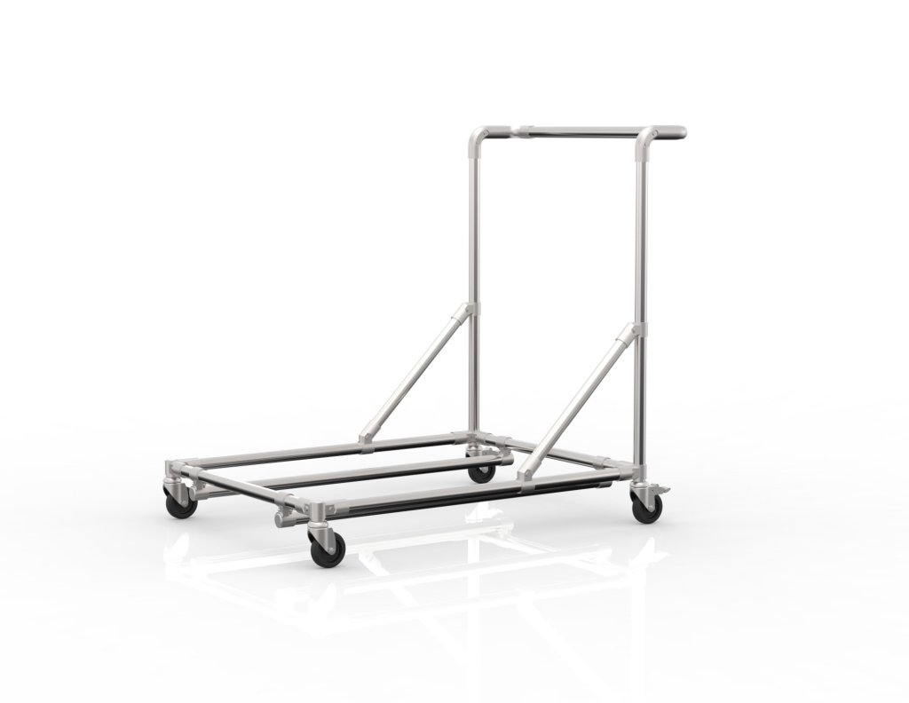 Ein Manipulationsfahrgestell mit Griff aus einem Rohrsystem ist geeignet für verschiedene Manipulationszwecke in Lagern und Werkstätten. Zum Fahrgestell gehören 2 drehbare Räder mit Bremse und 2 drehbare Räder ohne Bremse mit einem Durchmesser von 75 mm, die eine einfache Handhabung von Gegenständen ermöglichen. Das Innenmaß ist für 2 Kisten mit den Maßen 600 x 400 mm ausgelegt. Abmessungen 878 x 678 x 900 mm.
