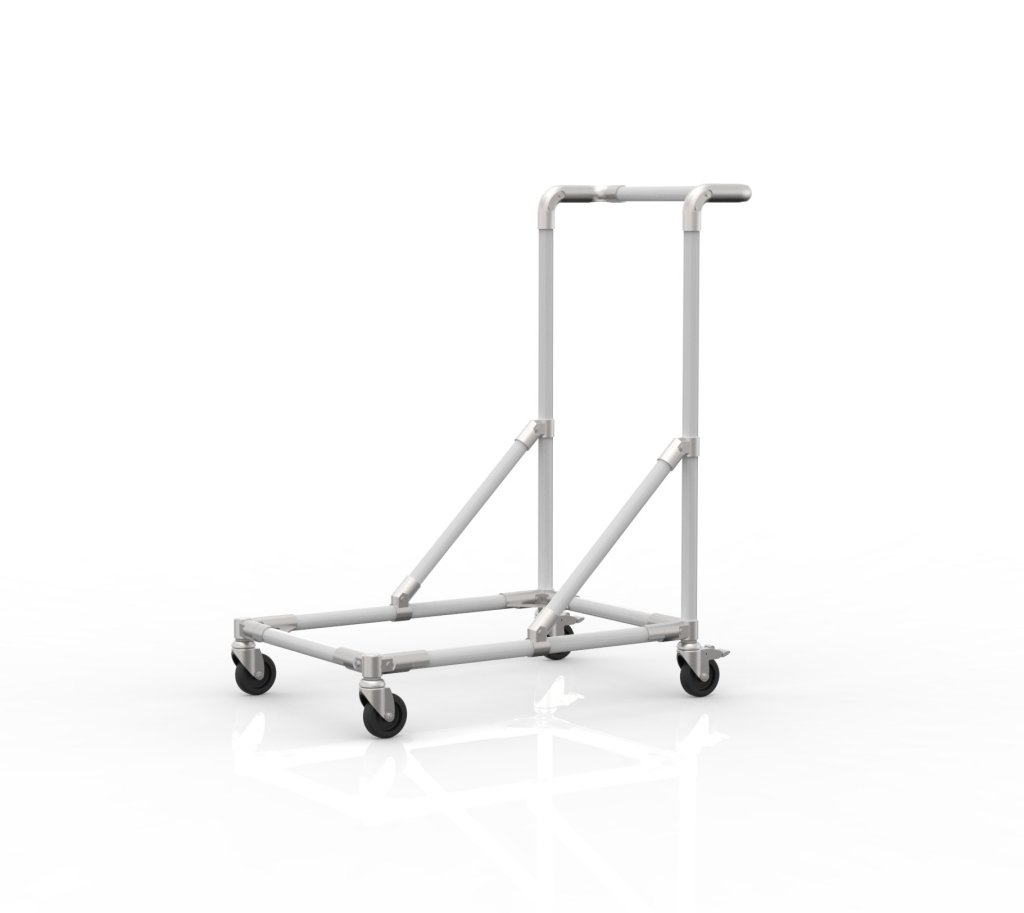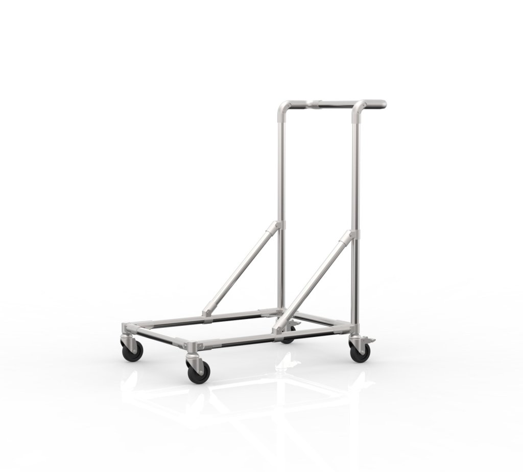 Ein Manipulationswagen aus einem Rohrsystem ist für verschiedene Handhabungszwecke in Lagern und Werkstätten geeignet.Der Unterbau besteht aus einer Laminatplatte, 2x drehbarem Rad mit Bremse und 2x drehbarem Rad ohne Bremse mit einem Durchmesser von 75 mm, die eine einfache Handhabung von Gegenständen ermöglichen. Die Innenmaße sind für eine Kiste mit den Abmessungen 600 x 400 mm ausgelegt. Abmessungen 138 x 678 x 478 mm.