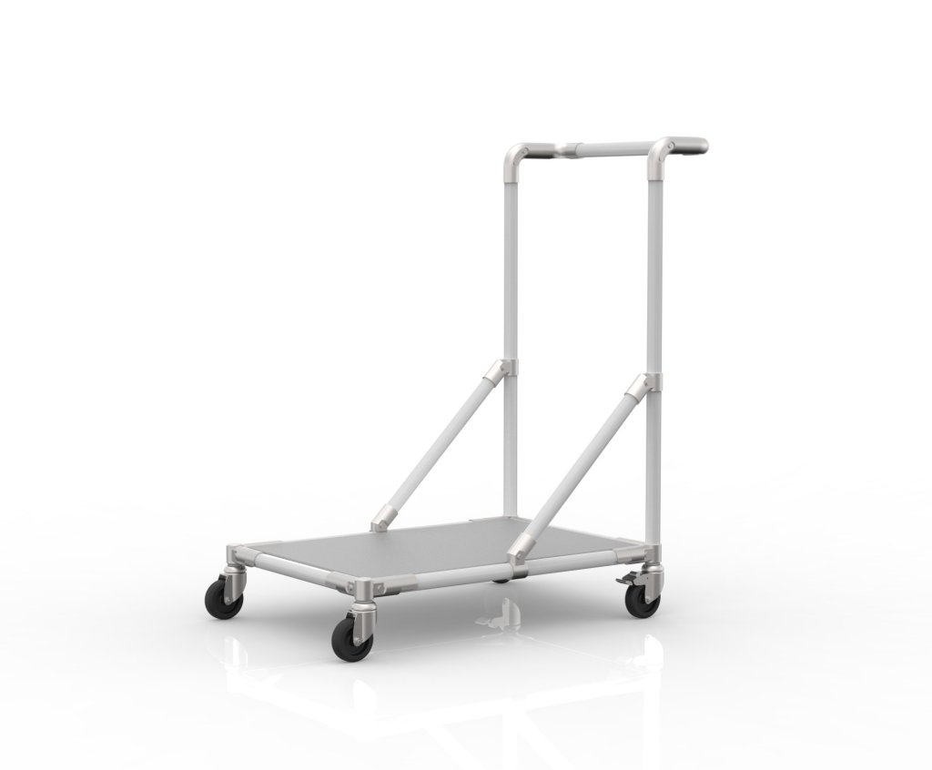 Ein Manipulationsfahrgestell mit Griff aus einem Rohrsystem ist geeignet für verschiedene Manipulationszwecke in Lagern und Werkstätten geeignet. Der Unterbau besteht aus einer Laminatplatte, 2x drehbarem Rad mit Bremse und 2x drehbarem Rad ohne Bremse mit einem Durchmesser von 75 mm, die eine einfache Handhabung von Gegenständen ermöglichen. Die Innenmaße sind für eine Kiste mit den Abmessungen 600 x 400 mm ausgelegt. Abmessungen 678 x 478 x 900 mm.