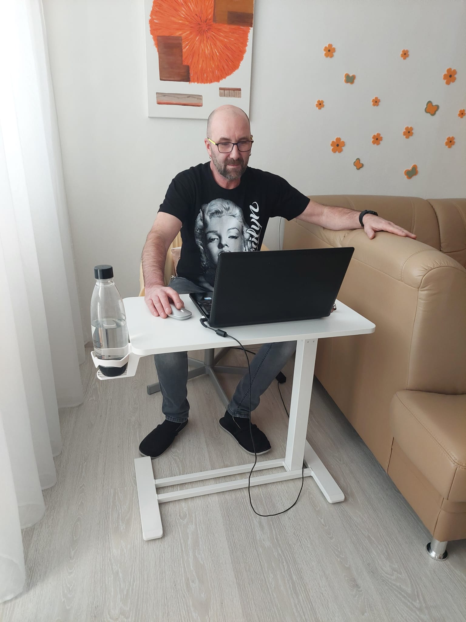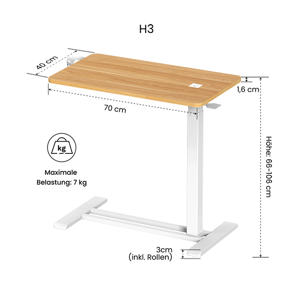 Der manuell höhenverstellbare Büro- und Schreibtisch mit vier versteckten Rollen ist der ideale tragbare Arbeitsplatz für Zuhause oder Büro. Die eingebaute Gasfeder des Tisches ermöglicht eine einfache und sanfte Höhenverstellung im Bereich von 660 - 1060 mm. Die Tischplatte verfügt über einen praktischen Getränkehalter. Der Tisch ist in weißer Farbe. Abmessungen: 660 - 1060 x 700 x 400 mm.