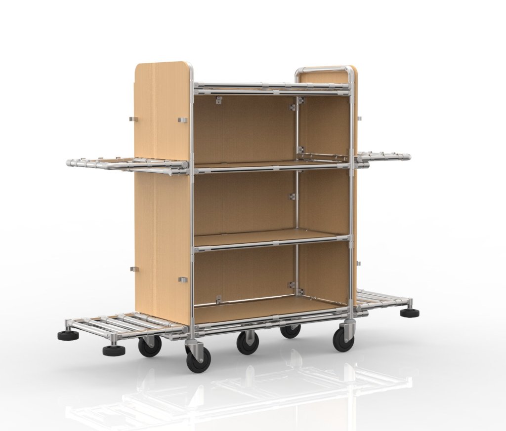 Der maßgeschneiderte Hotel-Reinigungswagen bietet ausreichend Platz für die Aufbewahrung von Reinigungsmitteln, Handtüchern und anderen Notwendigkeiten. Darüber hinaus erleichtert die robuste und leichte Konstruktion die Bewegung in engen Fluren. Verschiedene Farbkombinationen der Konstruktion, einschließlich unterschiedlicher Laminatplatten, sind möglich. Tragfähigkeit pro Etage 50 kg, Gesamttragfähigkeit 200 kg. Abmessungen 1429 x 1841 x 483 mm.