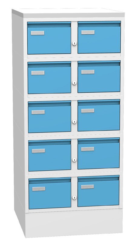 Karteischrank KAR 52S5 mit 10 Schubladen für die Dokumenten A5, H x B x T 1250 x 560 x 600 mm, orpusfarbe RAL 7035 Lichtgrau. vollständige Beschreibung und Parameter