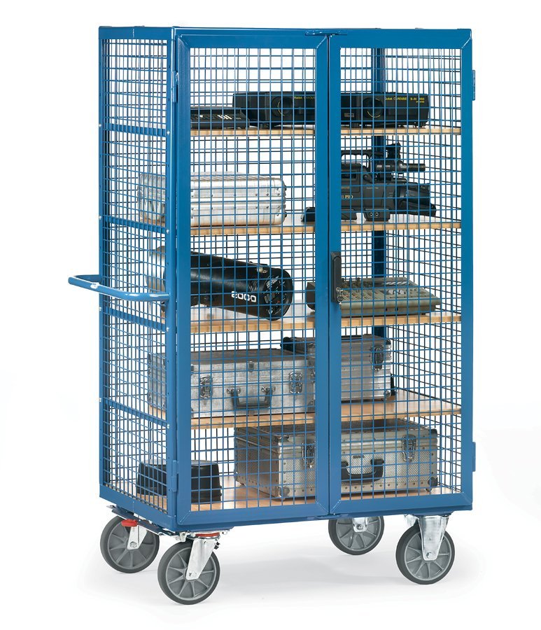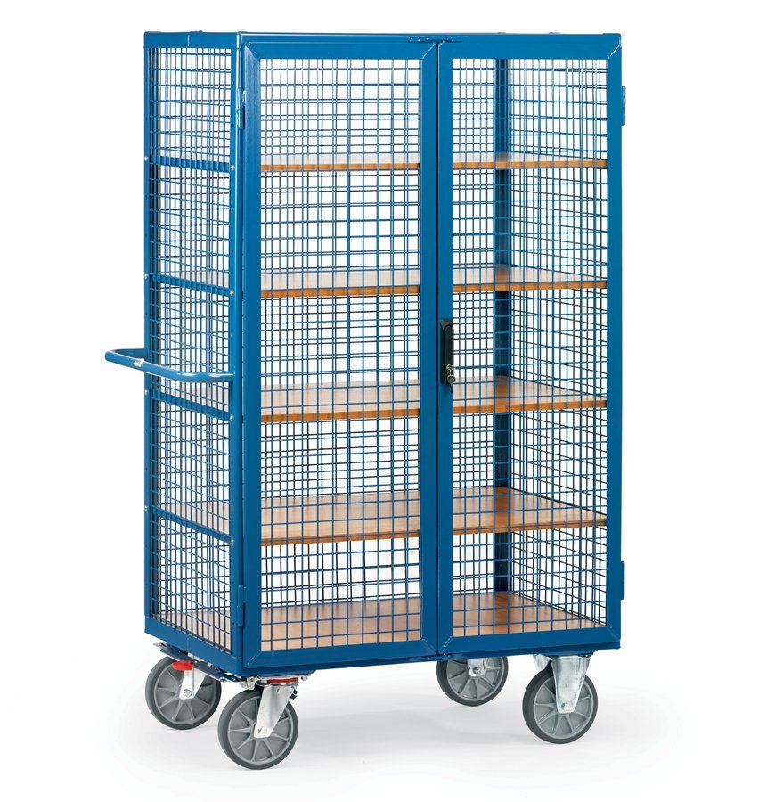 Kastenwagen 5392, Tragkraft 750 kg,mit Doppelflügeltür und Treibrieglverschluss, mit Drahtgitter verkleidet, TOTALSTOP, Ladefläche L x B 1000 x 680 mm, Ladehöhe 292, 582, 882, 1182, 1482 mm, Höhe 1792 mm