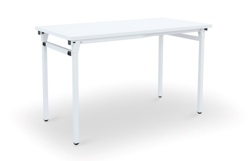 Konferenztisch, faltbar 44230, Tischplatten-Maße 1200 x 600 mm, aus laminierte Spanplatte mit ABS Kante, Farbe weiß, Stärke 25 mm. Fußgestell aus Stahl, RAL 7035 Lichtgrau. Höhe 720 mm, zusammengefaltet 95 mm.