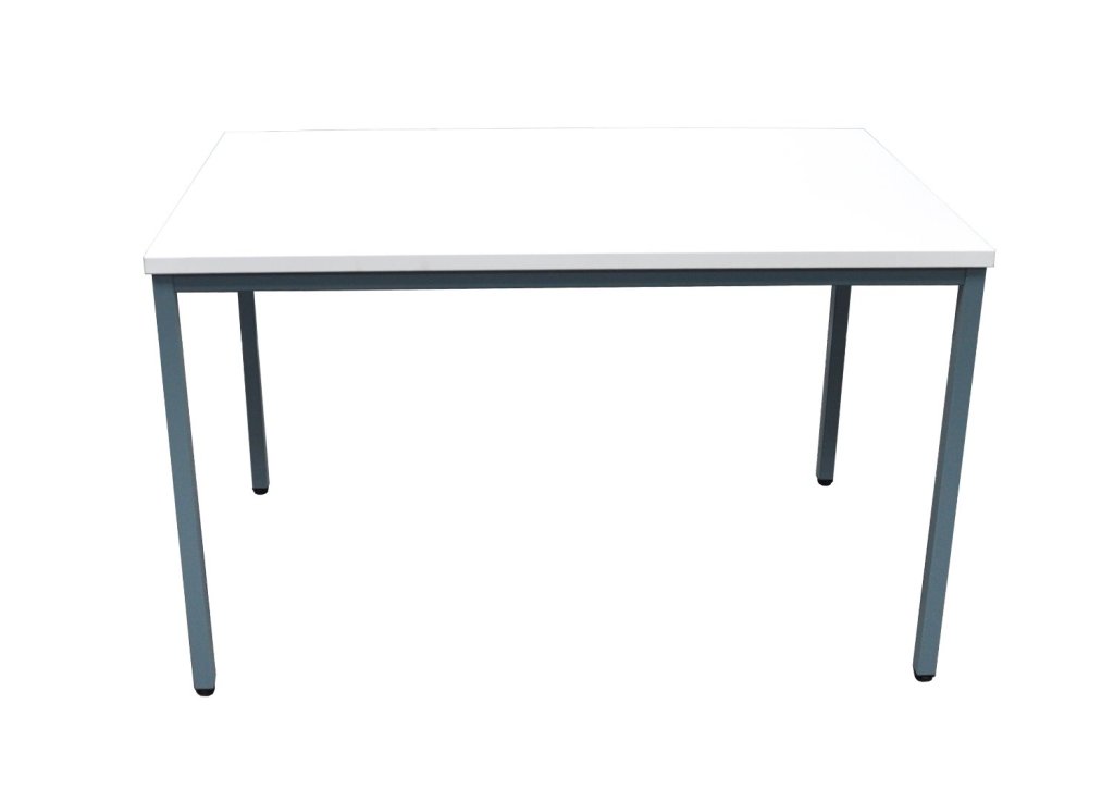 Konferenztisch, Tischplatten-Maße 1200 x 800 mm, aus laminierte Spanplatte mit ABS Kante, Farbe weiß, Stärke 25 mm. Fußgestell aus Stahl, RAL 7031 Grau. Höhe 720 mm.