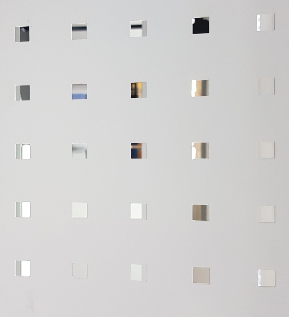 Lochplatte, ideal zum Aufhängen von Werkzeugen und für den schnellen Zugriff auf Verbindungselemente. Abmessungen 2000 x 1000 mm, Dicke 1,4 mm, quadratische Öffnungen 10 x 10 mm, Lochabstand 38 x 38 mm, Farbe grau RAL 7035.