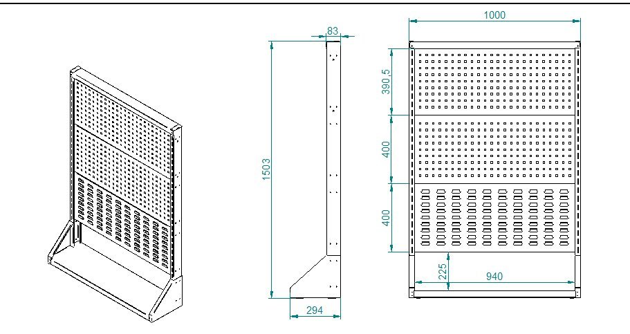Lochplatten-Stellwand H x B x T 1503 x 1000 x 294 mm