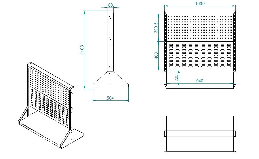 Lochplatten-Stellwand, H x B x T 1103 x 1000 x 504 mm vollständige Beschreibung und Parameter