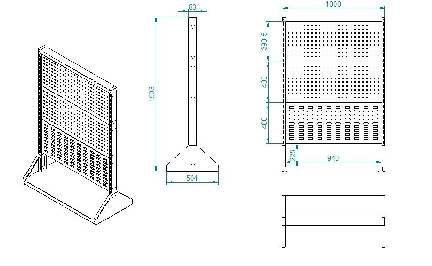Lochplatten-Stellwand, H x B x T 1503 x 1000 x 504 mm vollständige Beschreibung und Parameter