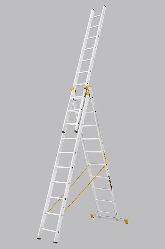 Mehrzweckleiter Forte 8615, 3-teilig, Breite 340-484 mm, Sprossenzahl 3x15, max. Arbeitshöhe 10,30 m