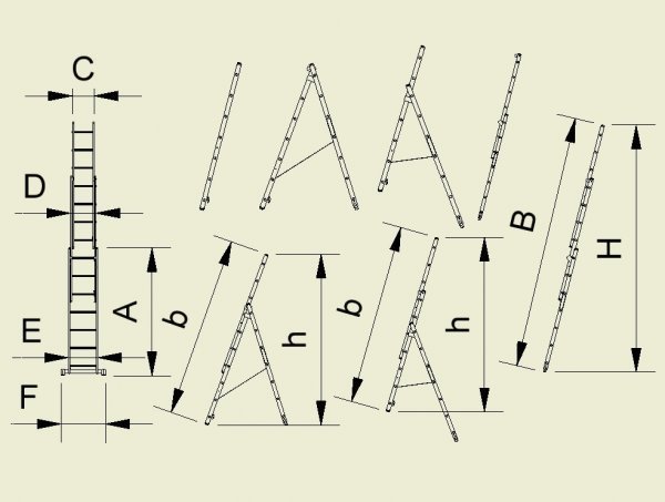 Mehrzweckleiter mit Anpassung für Treppen 7808 Eurostyl, 3-teilig, Breite 340-454 mm, Sprossenzahl 3x8, max. Arbeitshöhe 4,99 vollständige Beschreibung und Parameter