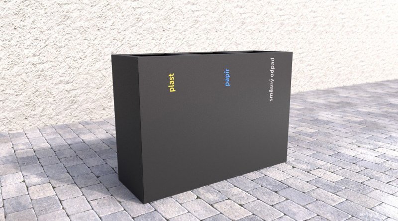 Mülleimer 3-fach Steel, für Außenbereich, pulverbeschichtet oder feuerverzinkt.