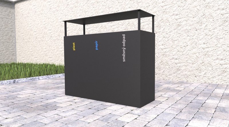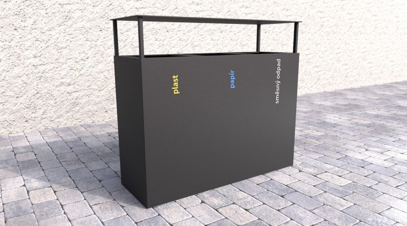 Mülleimer 3-fach Steel II, für Außenbereich, mit Dach, pulverbeschichtet oder feuerverzinkt. vollständige Beschreibung und Parameter