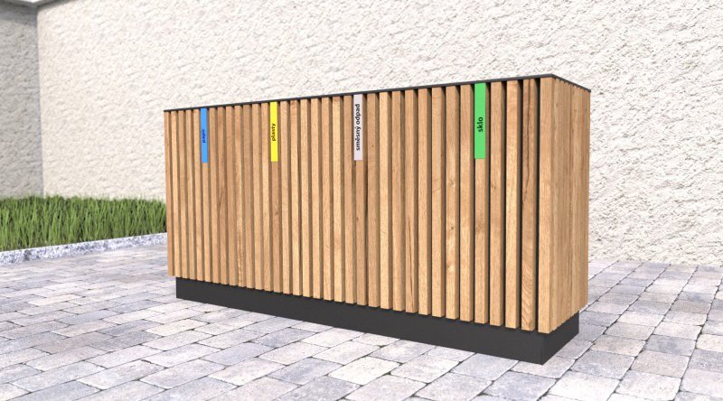 Mülleimer 4-fach, Lamela III, mit Holzbelattung, Holzlatten 3-fach lasiert, pulverbeschichtet oder feuerverzinkt. vollständige Beschreibung und Parameter