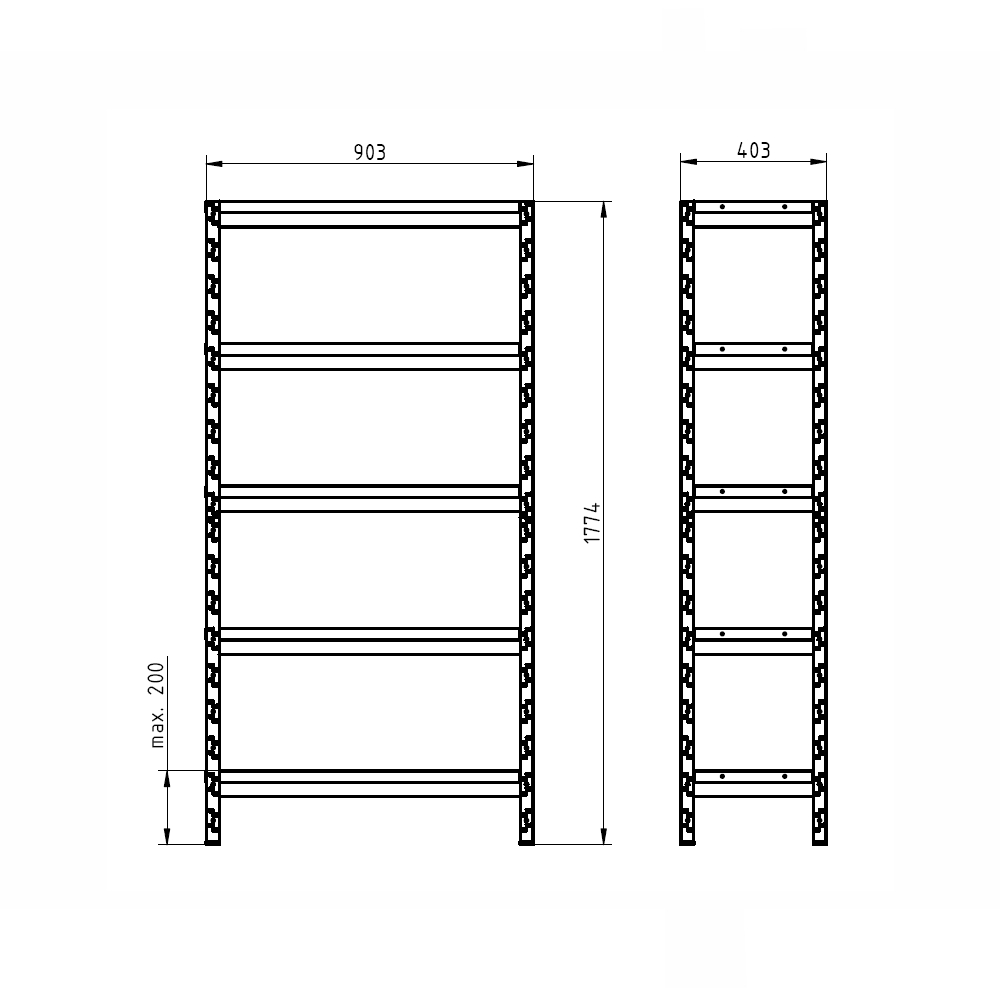 Regal mit Fachböden, H x B x T 1770 x 900 x 450 mm