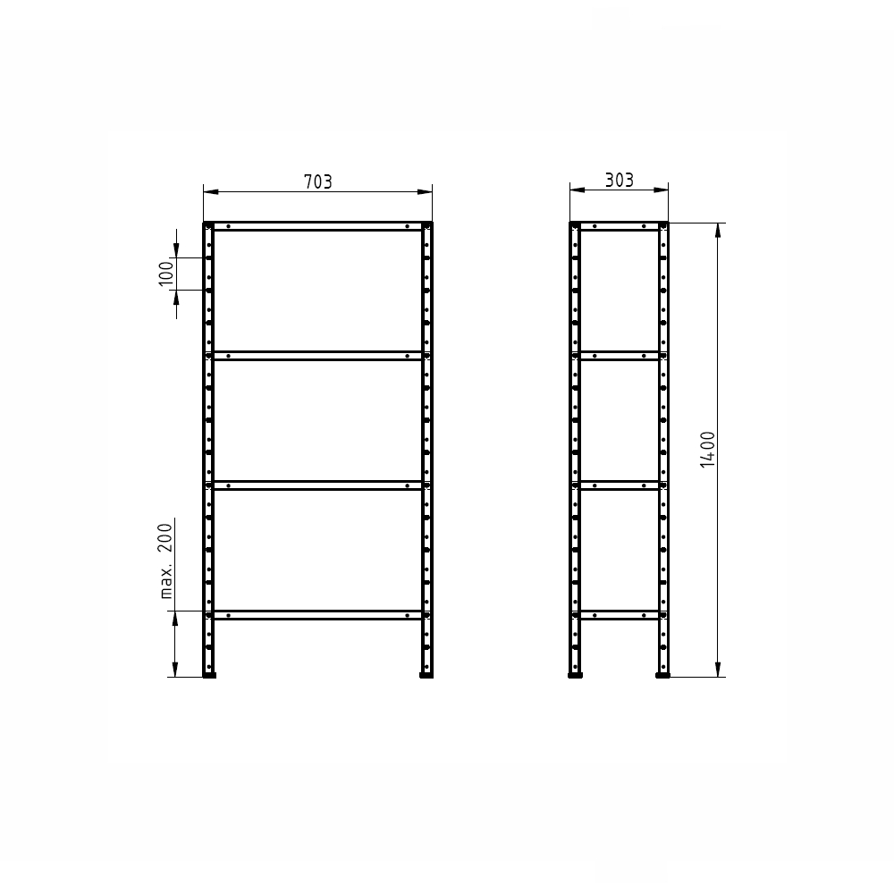Regal mit Fachböden, H x B x T 1400-1800 x 700-750 x 300 mm
