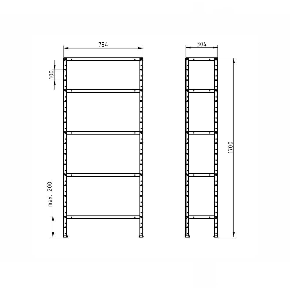 Regal mit Fachböden, H x B x T 1700 x 750 x 300 mm