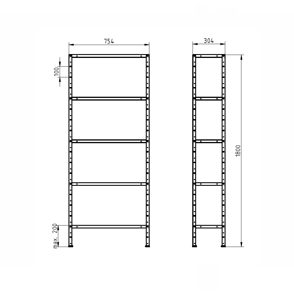 Regal mit Fachböden, H x B x T 1800 x 750 x 300 mm vollständige Beschreibung und Parameter