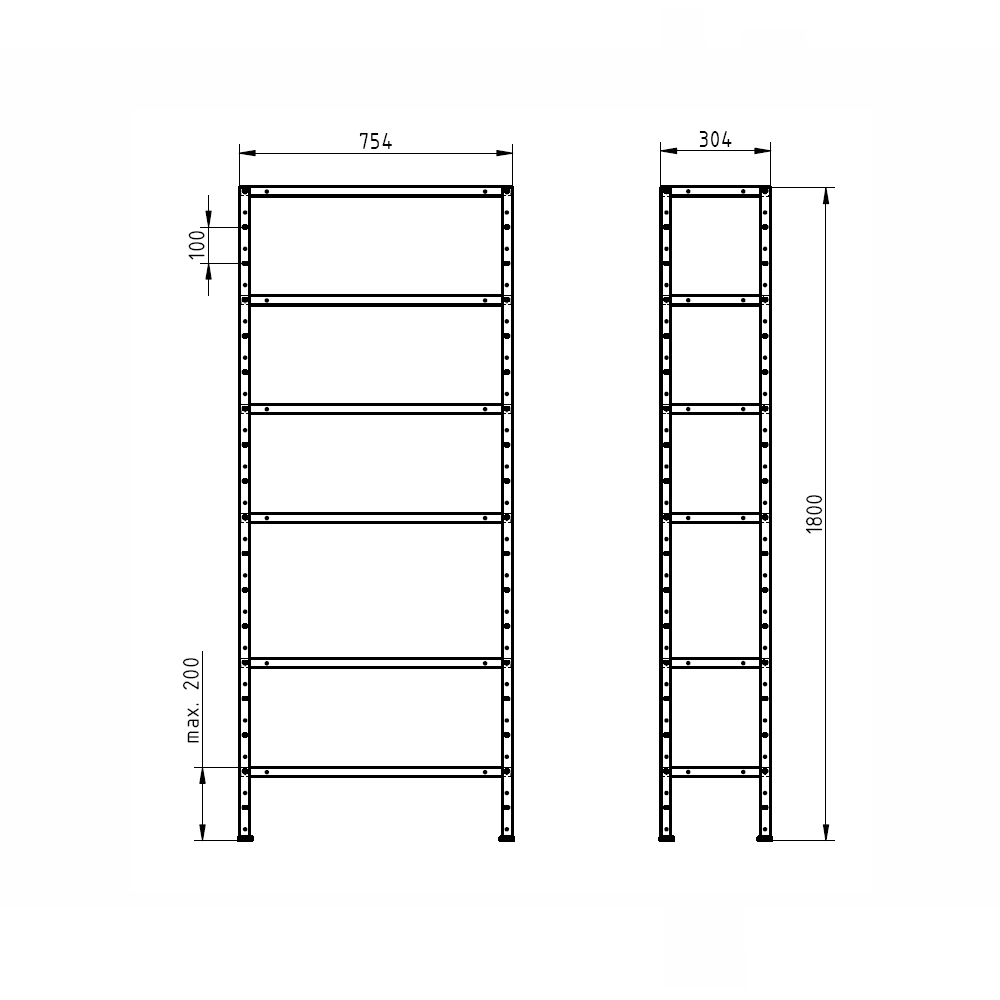 Regal mit Fachböden, H x B x T 1800 x 750 x 300 mm vollständige Beschreibung und Parameter
