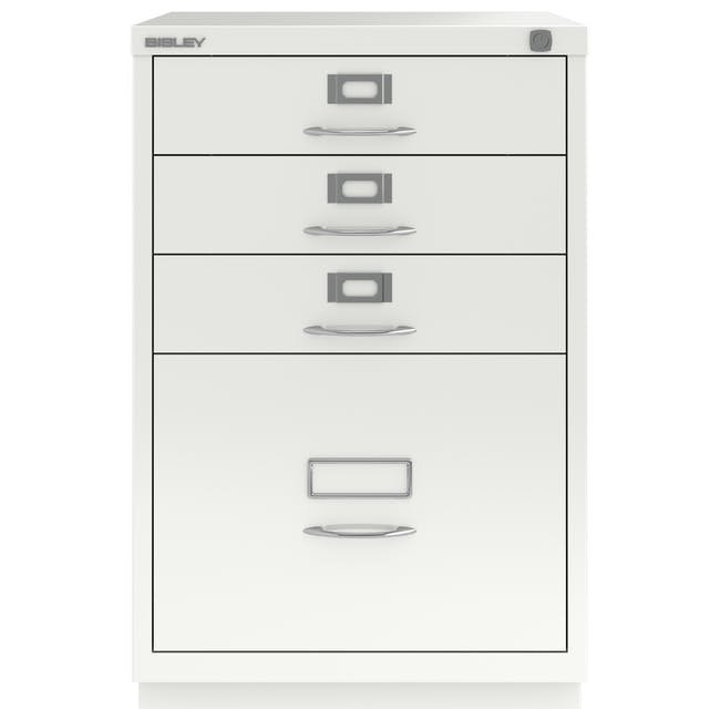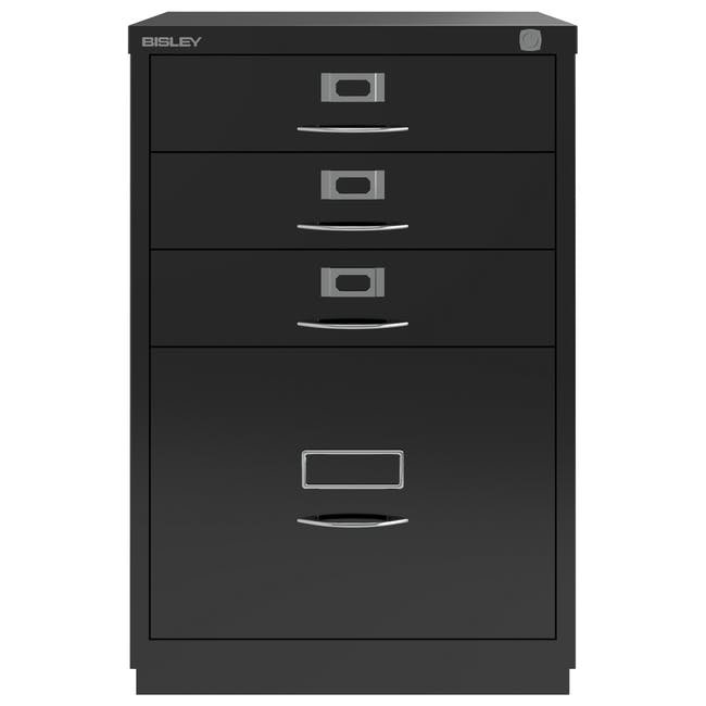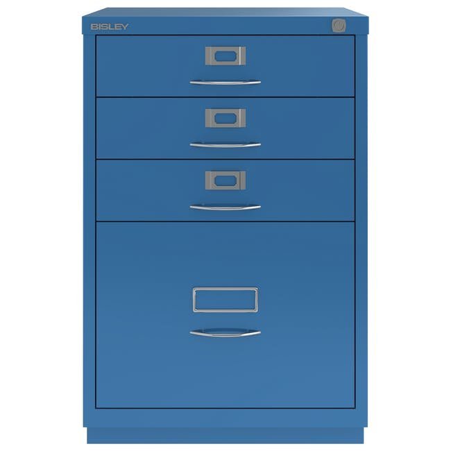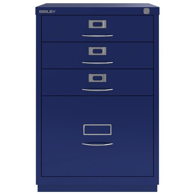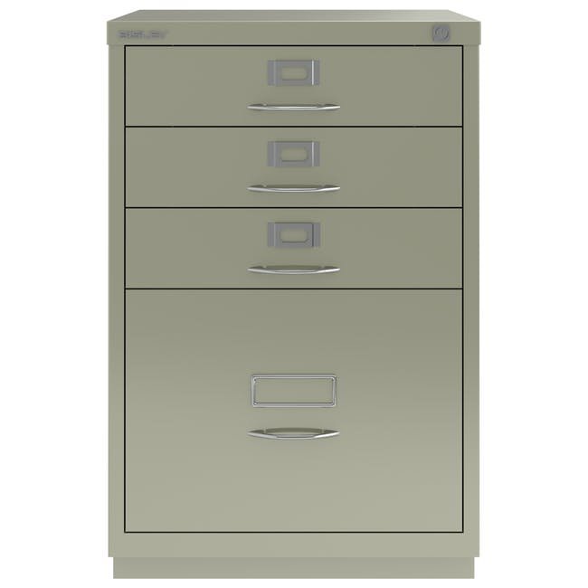 Registraturschrank Bisley F6E, H x B x T 711 x 470 x 470 mm, verschiedene Farben, Bügelgriffe, Chrombeschichtung.