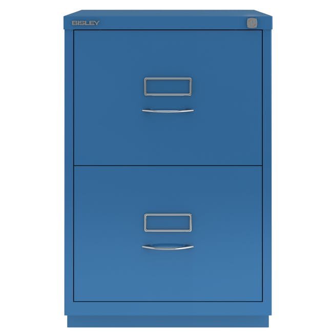 Registraturschrank Bisley 2FE, H x B x T 711 x 470 x 470 mm, verschiedene Farben, Bügelgriffe, Chrombeshichtung vollständige Beschreibung und Parameter
