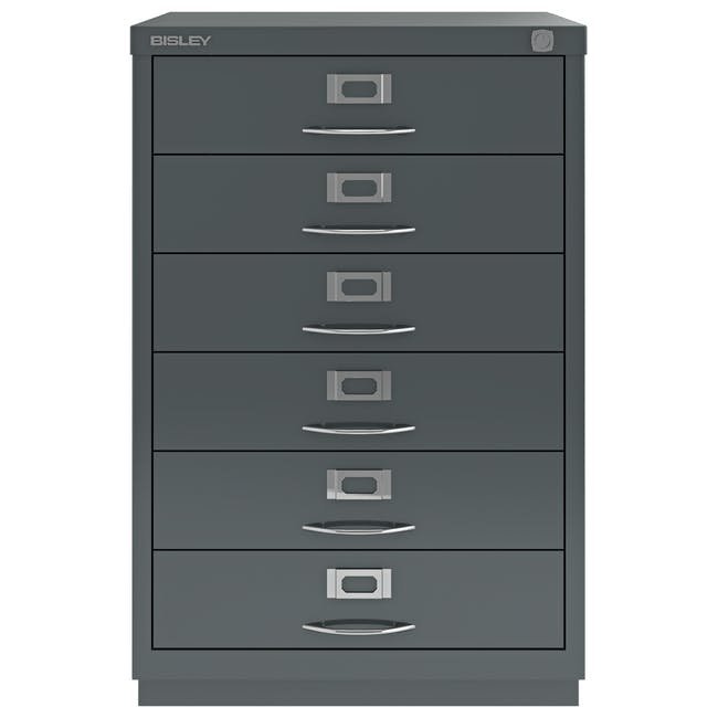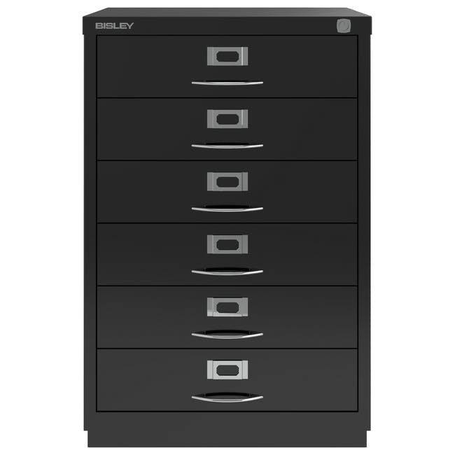 Bisley Schubladenschrank BA3/6 112, H x B x T 670 x 349 x 432 mm, DIN A3, mit Sockel in Schwarz, 6x Schublade
