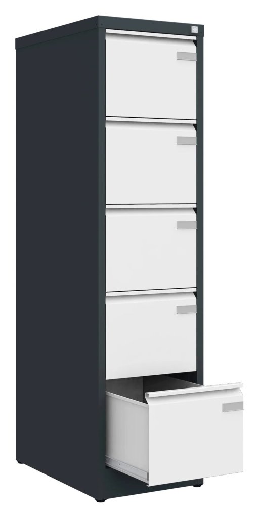 Aktenschrank Bisley BS5E/A4+FLS, H x B x T 1511 x 470 x 622 mm, 5x Schublade, DIN A4, Folio oder Foolscap