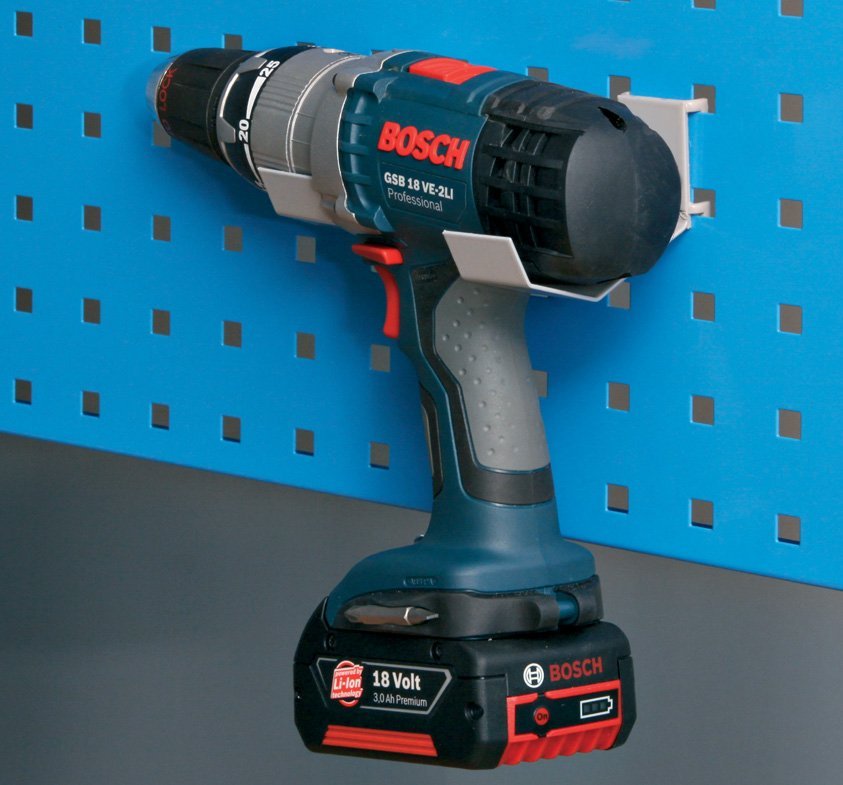 Die Kunststoffhalterungen werden aus stoßfestem ABS Kunststoff hergestellt und sind in den Trägern bzw. Werkzeugrahmen mithilfe von zwei Sicherungen in der gewünschten Position fixiert. Ohne Werkzeug, ohne Schrauben!