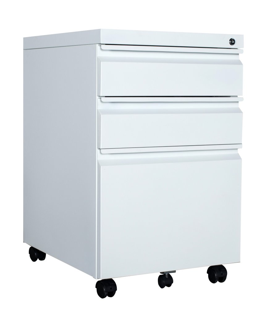 Rollcontainer HDT-N-03, 3 Schubläden, aus Stahlblech 0,6 mm. H x B x T 595 x 390 x 500 mm, Zentralverriegelung, pulverbeschichtet, Farbe weiß.