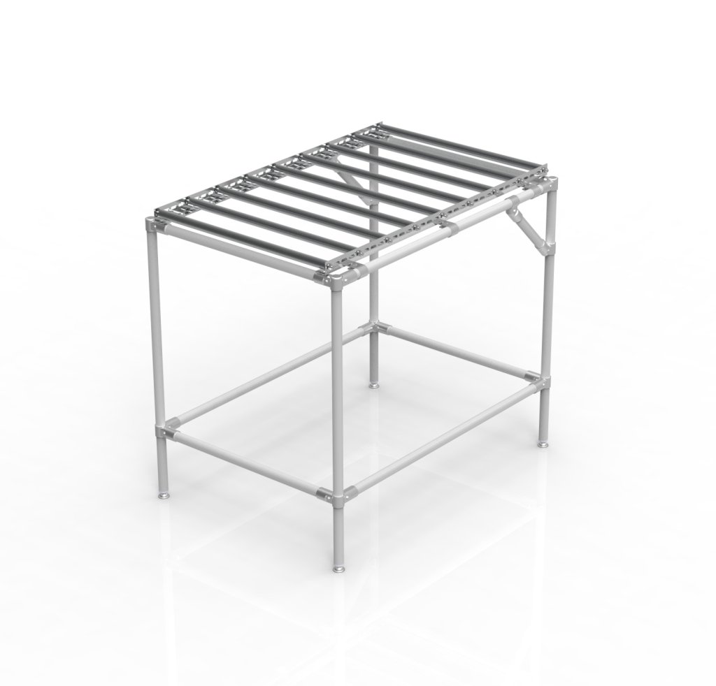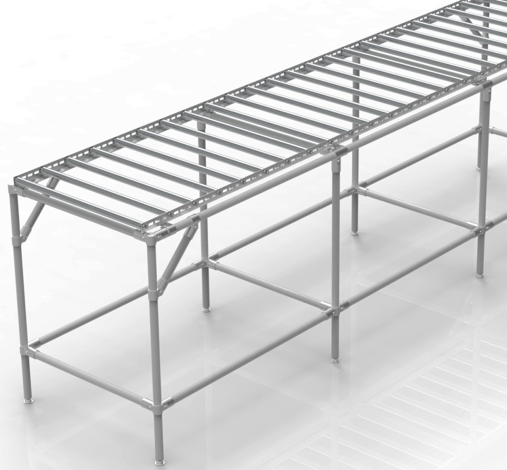 Rollenförderer stellen eine ideale Lösung für den reibungslosen Transport von KLT-Boxen, Paketen und anderen Stückgütern dar. Dank der modularen Rohrkonstruktion kann das System einfach angepasst und auf die spezifischen Anforderungen des Betriebs abgestimmt werden.