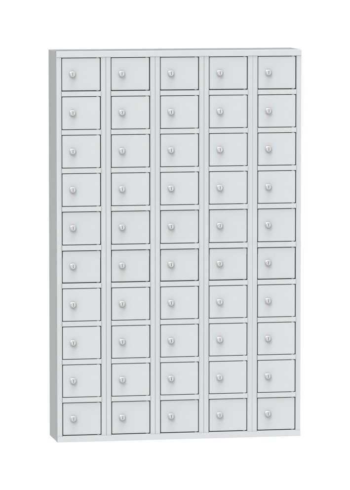 Schließfachschrank 50 Fächer, H x B x T 1530 x 975 x 200 mm, für persönliche Wertsachen.