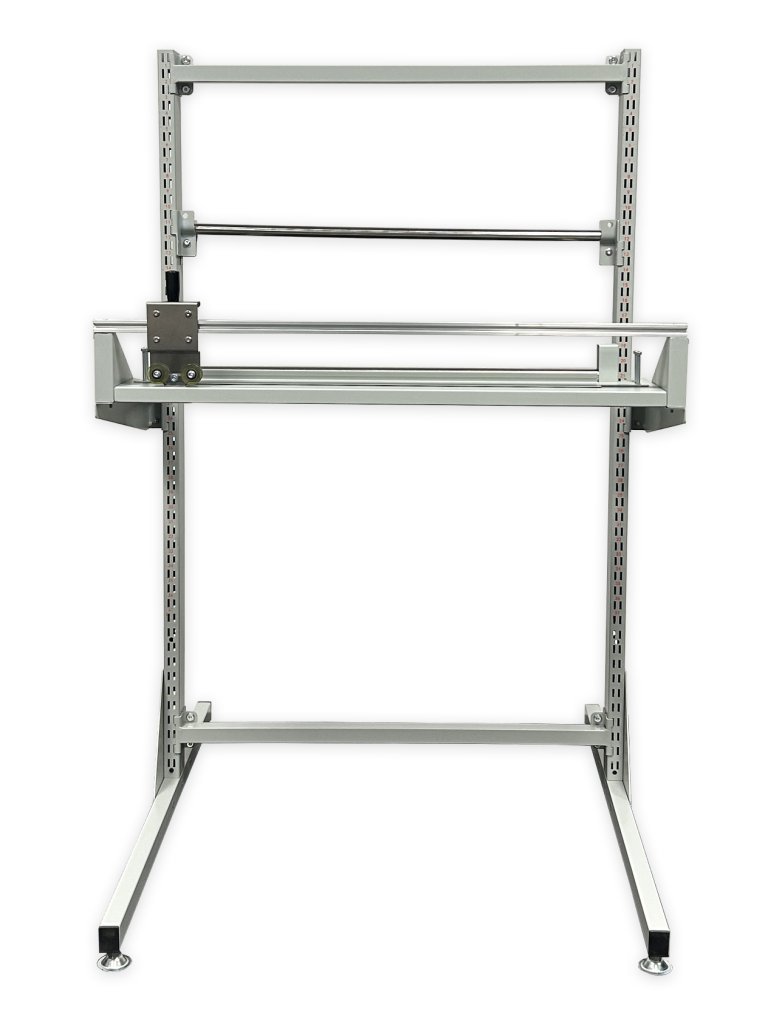 Horizontaler Schneideständer für verschiedene Verpackungsmaterialien. Abmessungen Höhe 1430 x Breite 935 x Länge 1000 mm. Baufarbe grau.