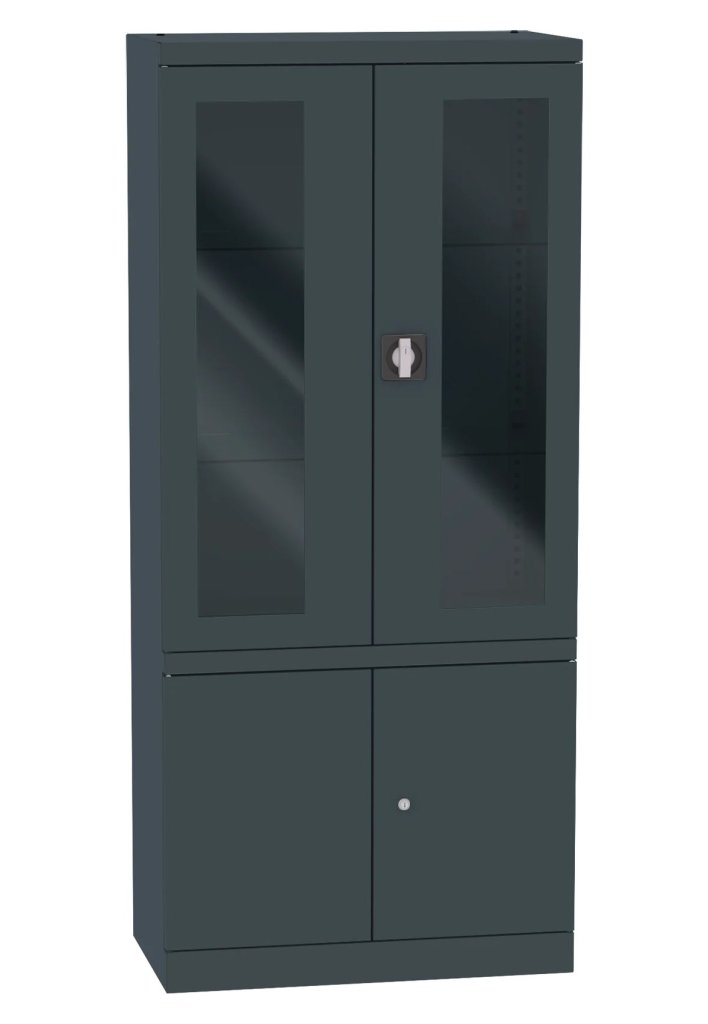 Schrank mit Glas- und Vollblechtüren Malow SML 114, H x B x T  1800 x 800 x 435 mm, 2-Punkt-Verriegelung, 3x Glasfachboden vollständige Beschreibung und Parameter