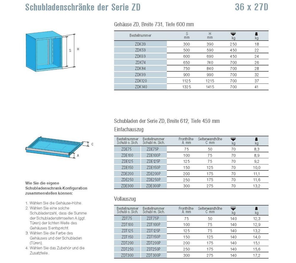 Schrankgehäuse ZDK59,  H x B x T  590 x  731 x 630 mm, Zentralverriegelung mit Auszugssperre. vollständige Beschreibung und Parameter