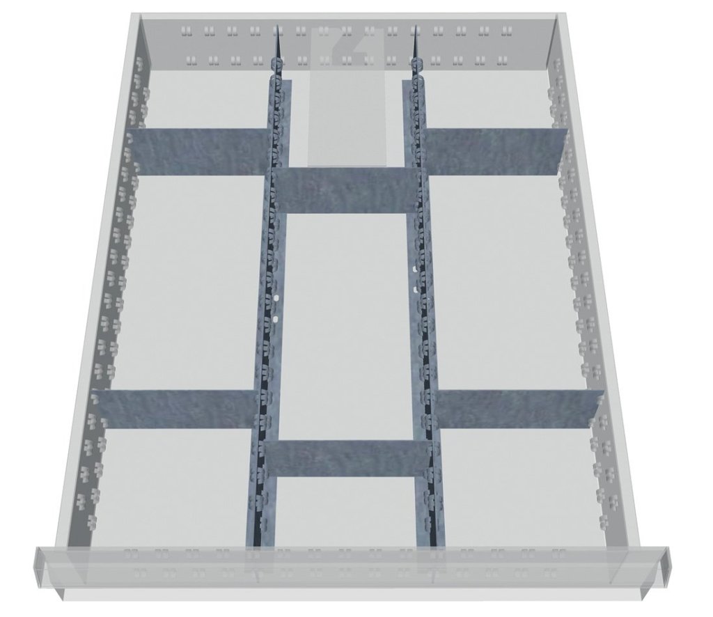 Einteilungsset für 4 Schubladen 500/584A, für Schubladenschränke Bedrunka + Hirth B x T 555 x 736 mm.