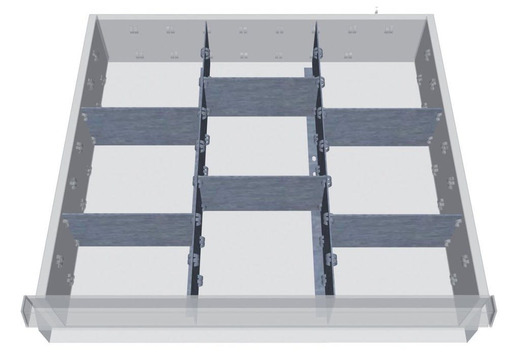 Schubladeneinsatz 146-139B, für Schubladenhöhe 100 mm, für Werkstattwagen B x T 530 x 500 mm vollständige Beschreibung und Parameter